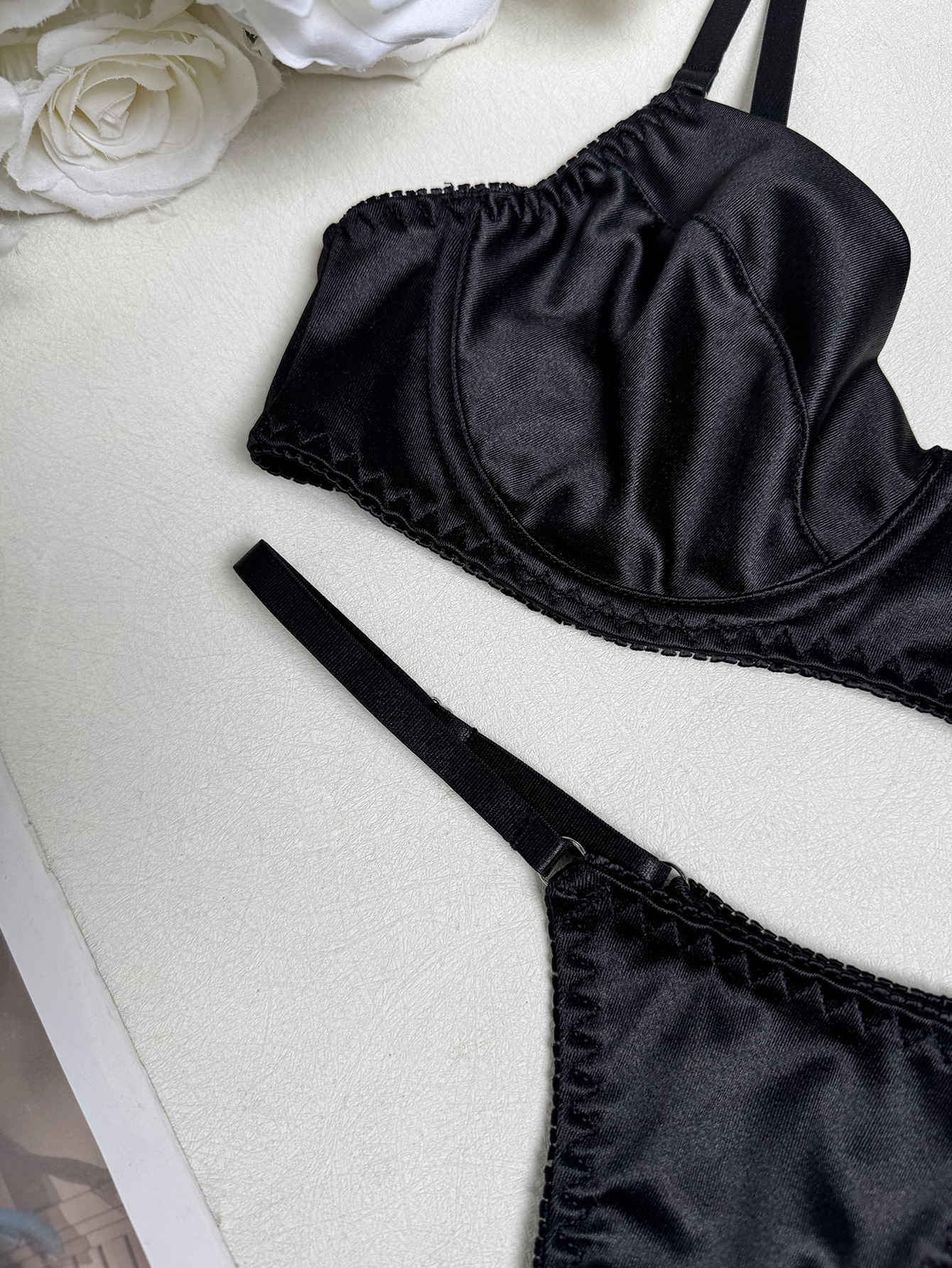 Ensemble soutien-gorge à armatures classique et sexy deux pièces en satin fleuri à armatures