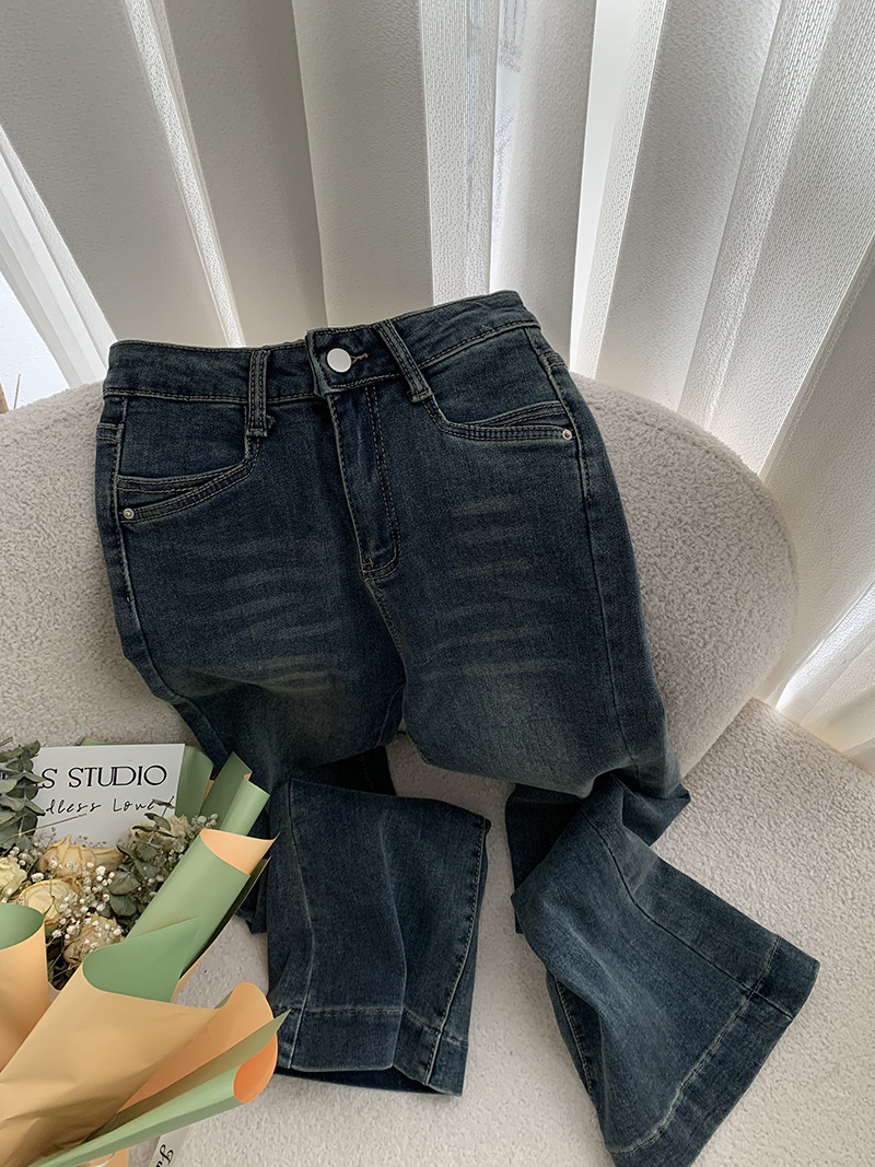 Jean évasé style rétro, taille haute, élastique et amincissant
