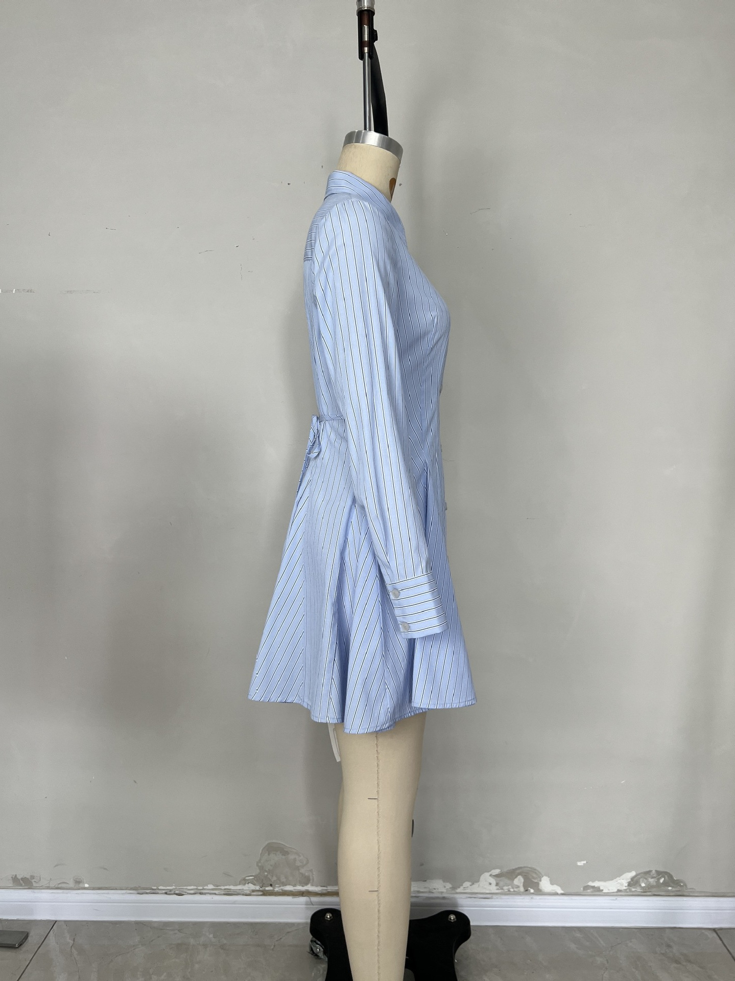 欧洲站七分灯笼袖洋气收腰打底衫别致腰带衬衫