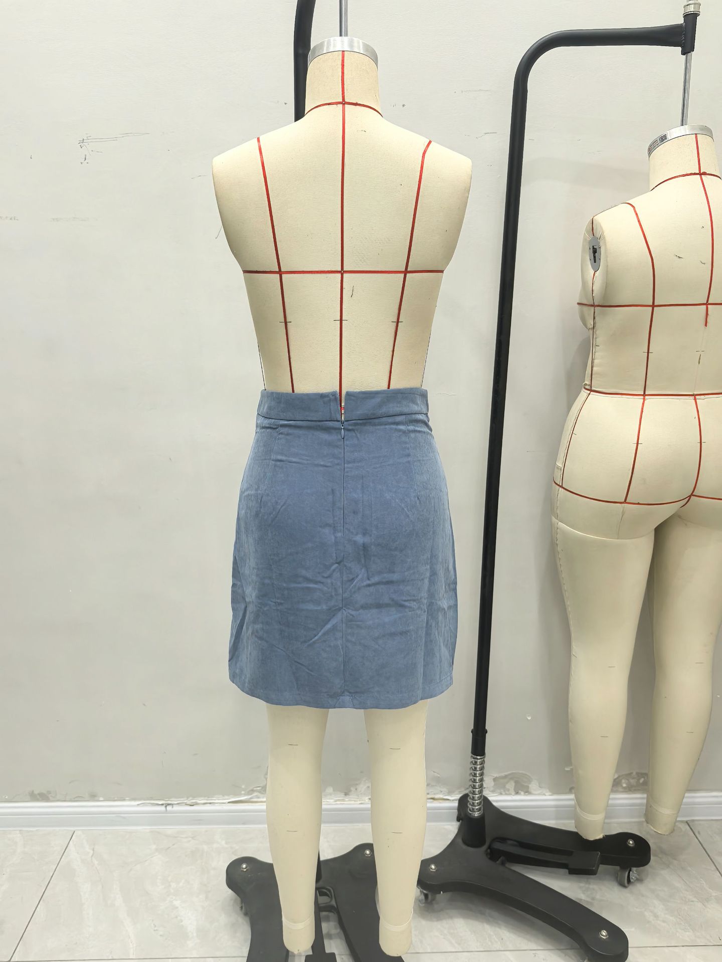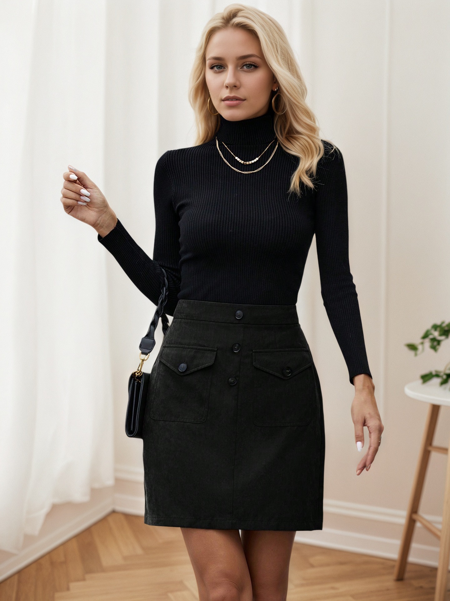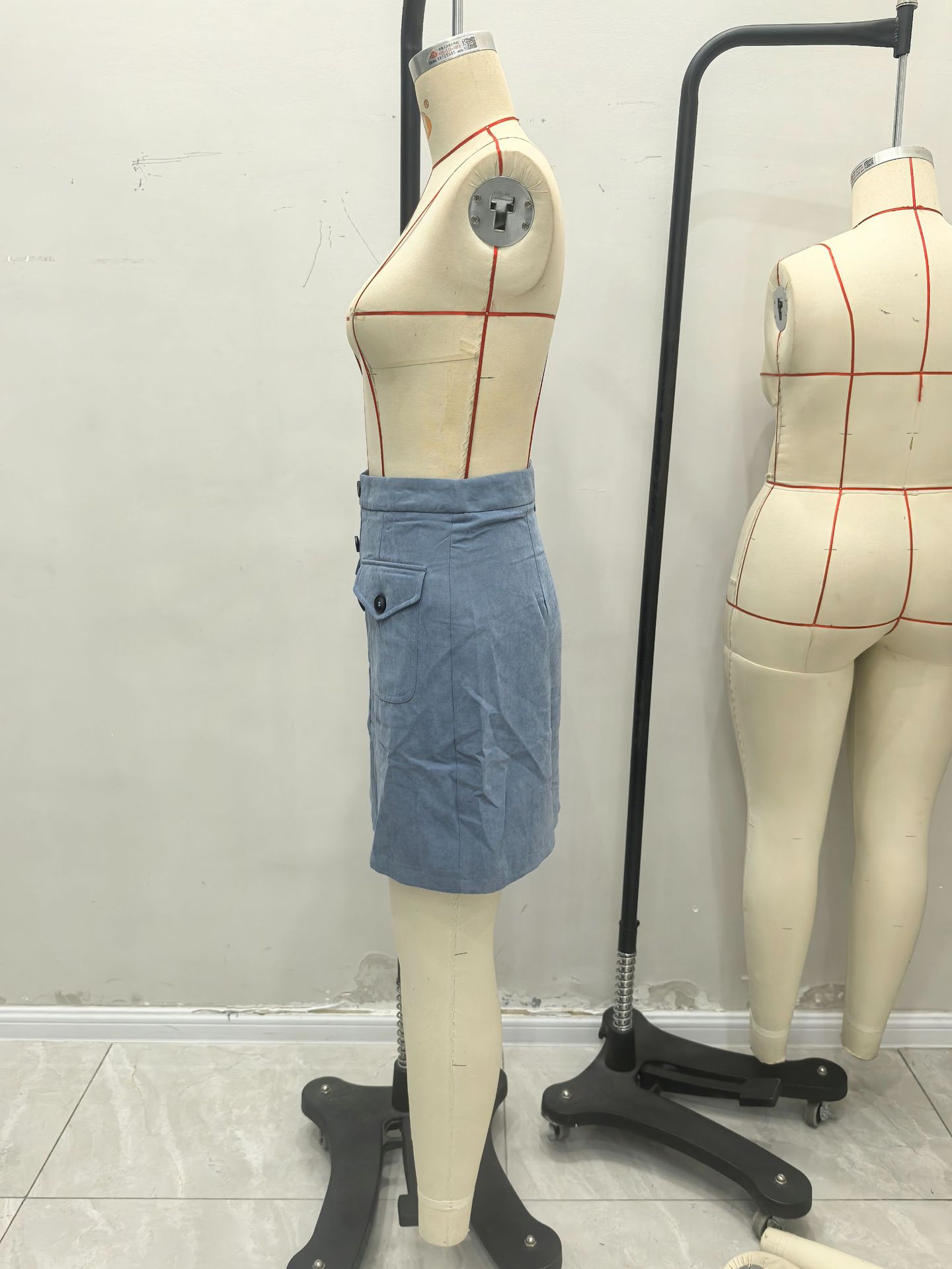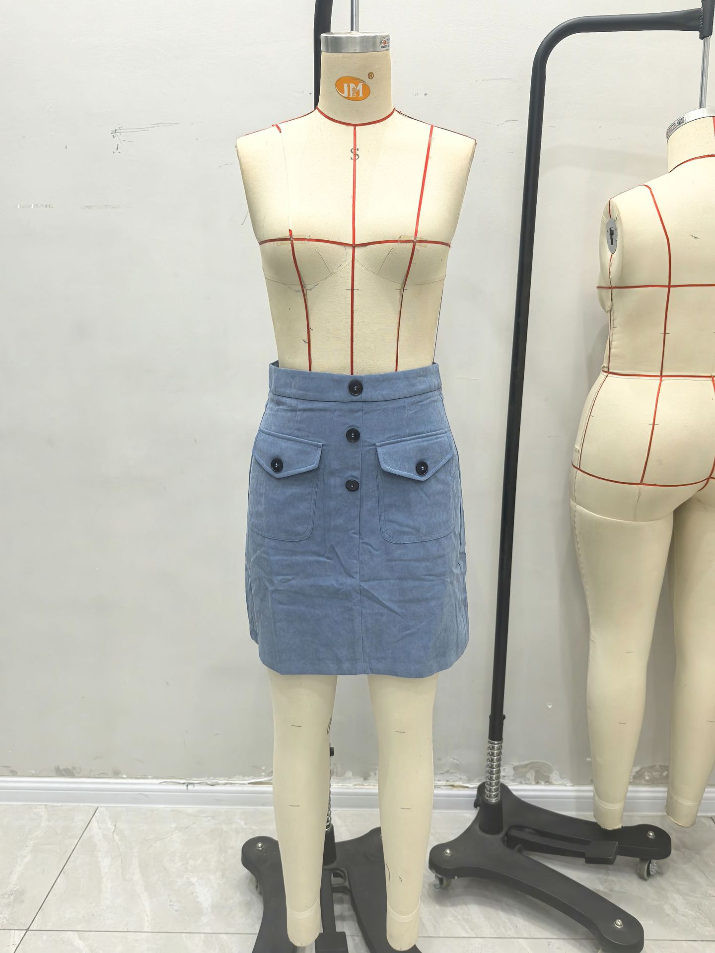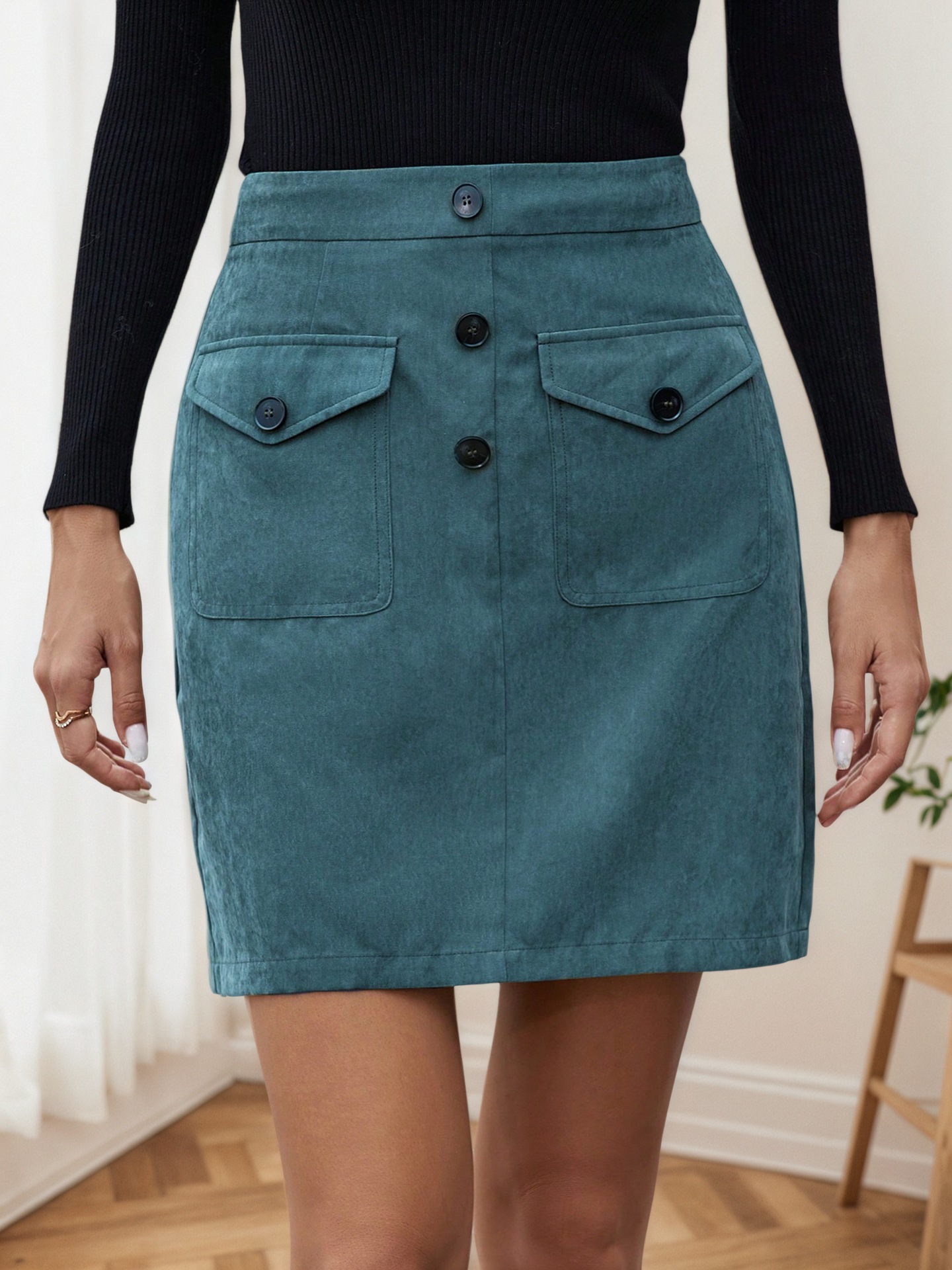 Jupe taille haute à poches rabattues et boutons sur le devant