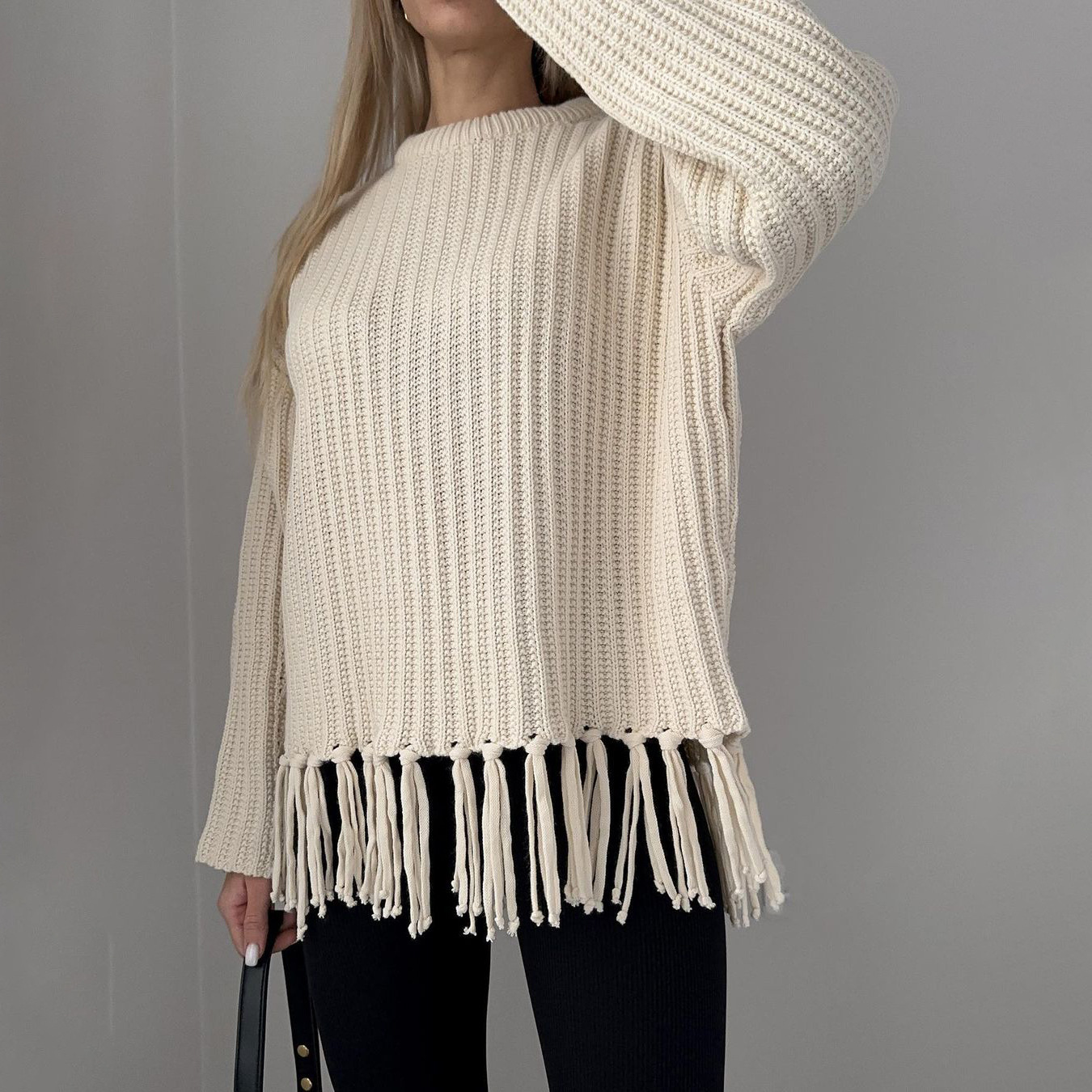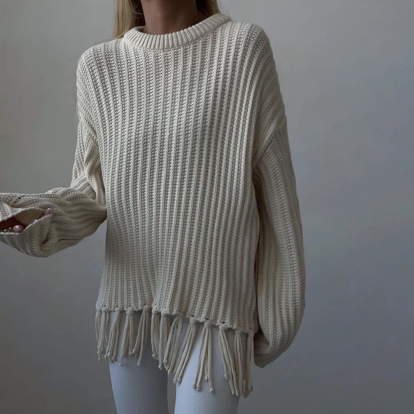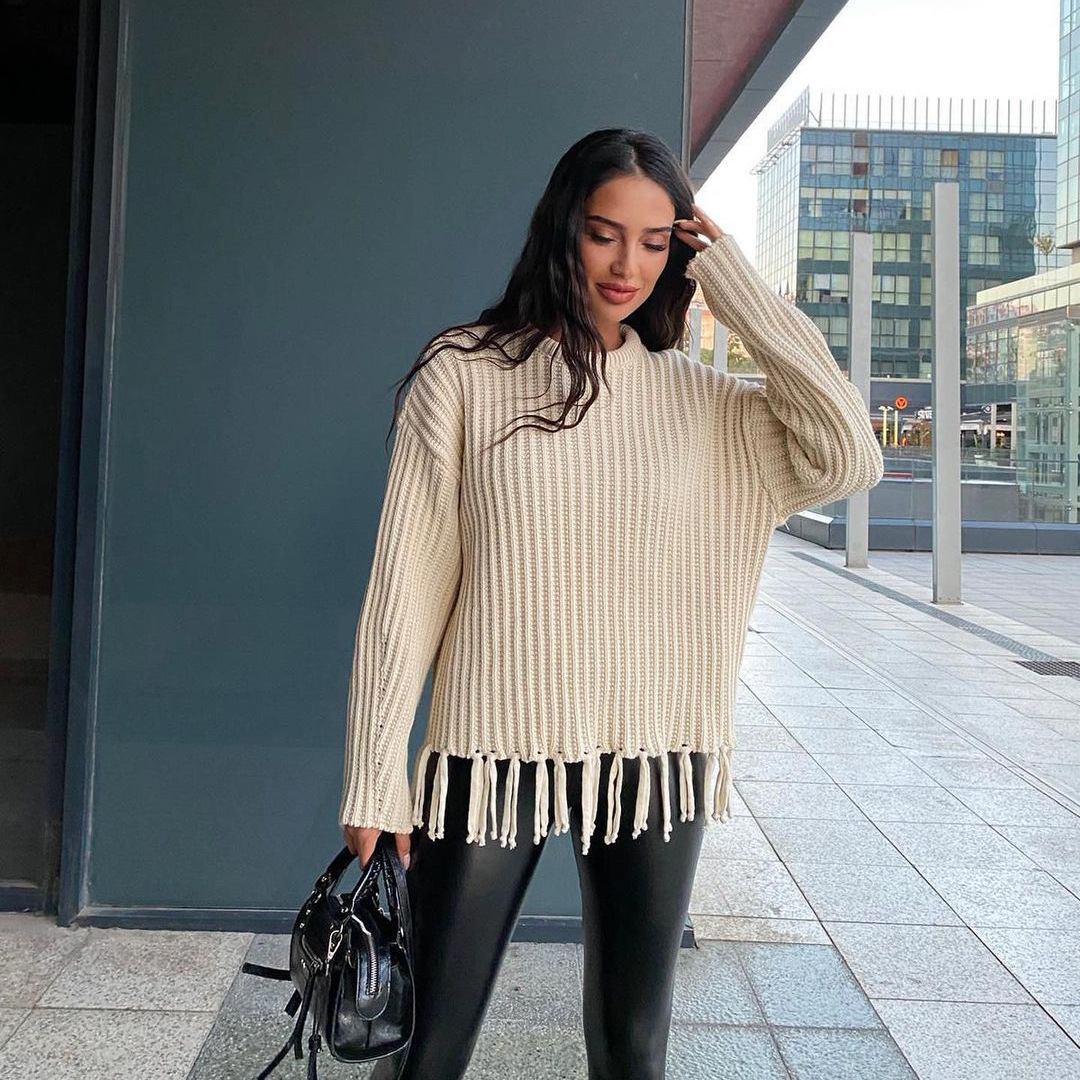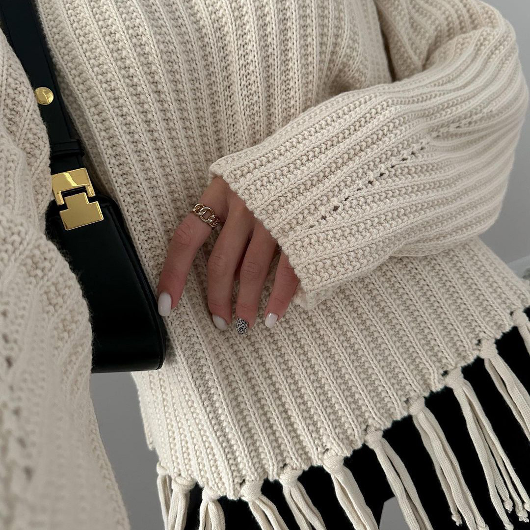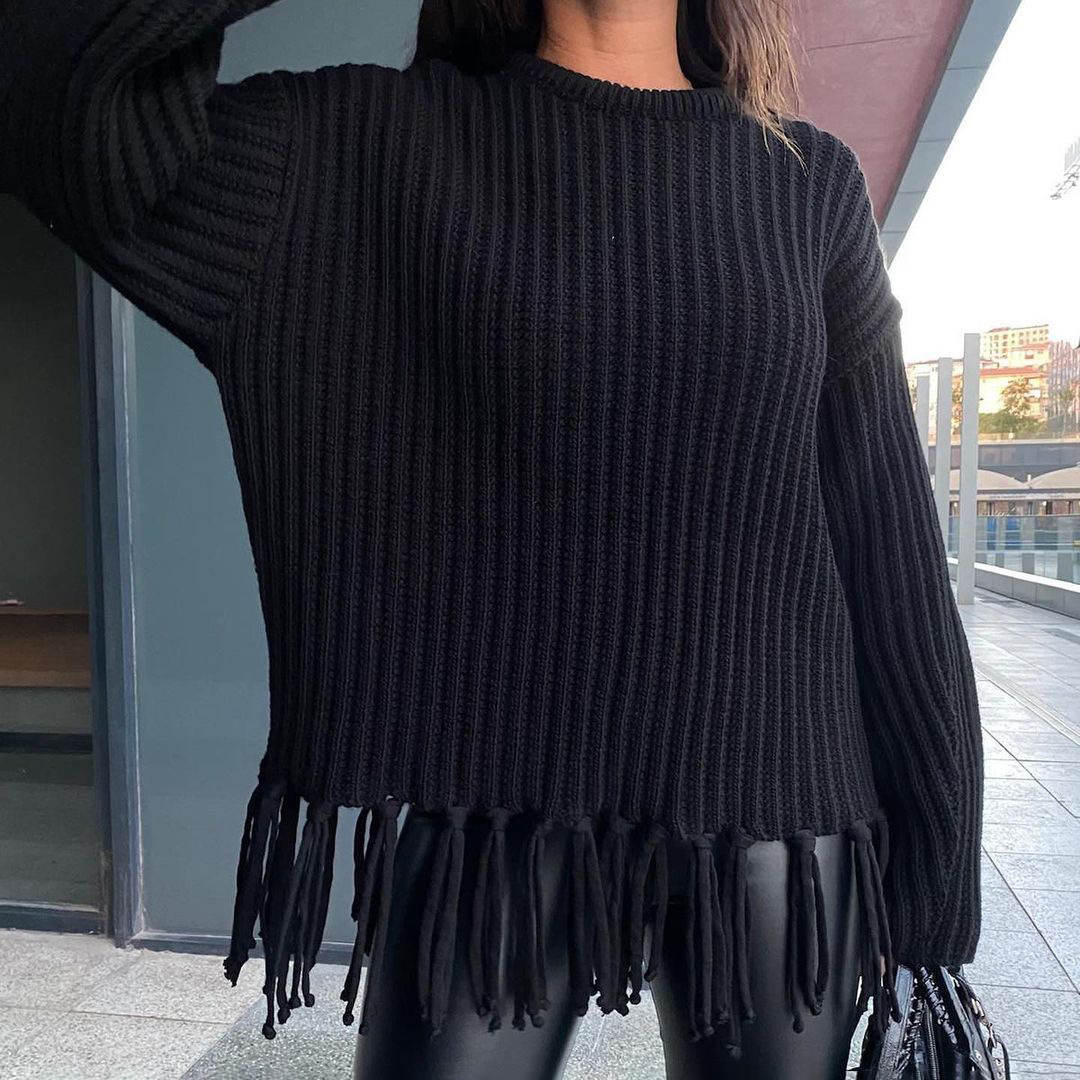 pull à pompons, manches longues.