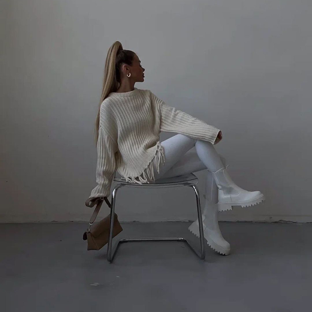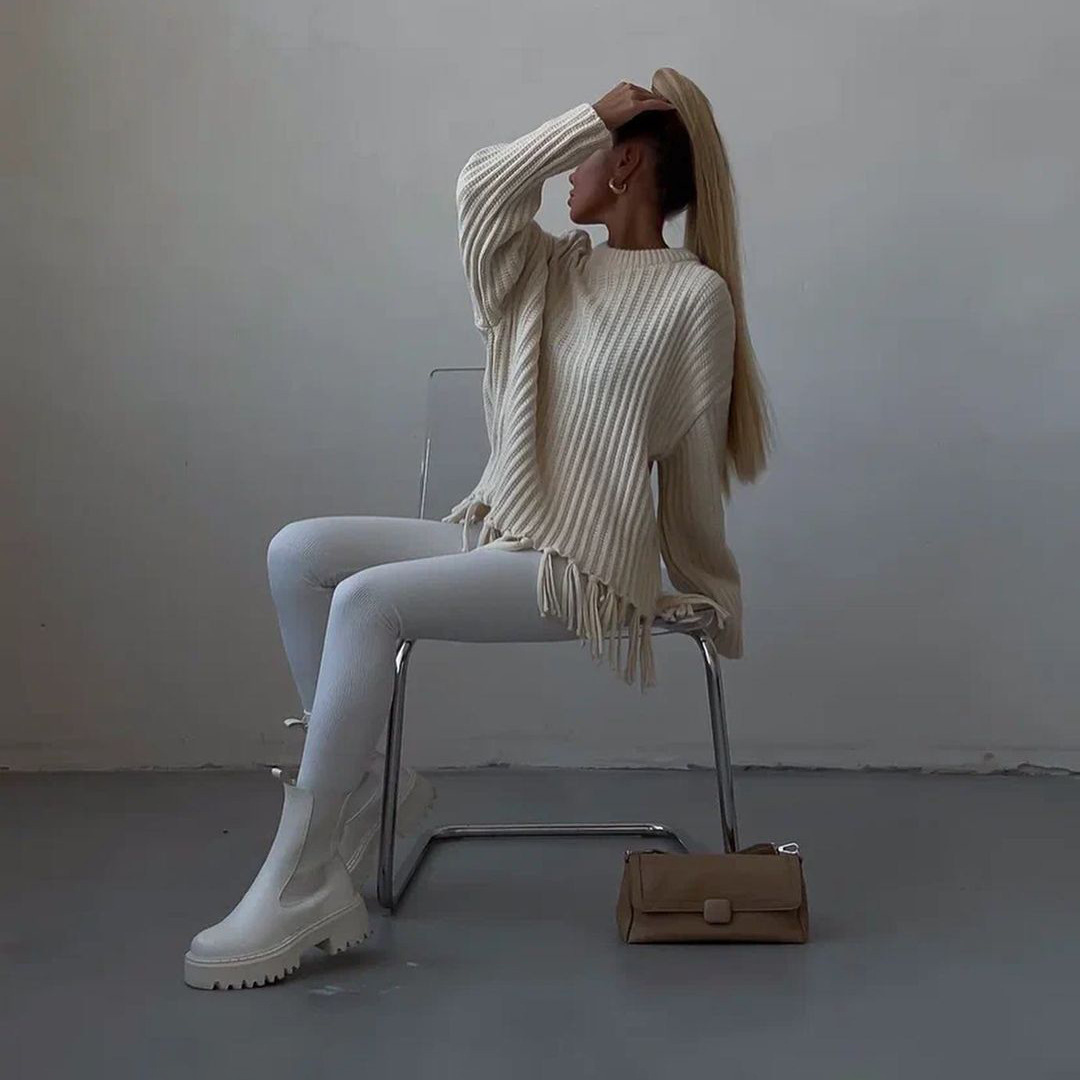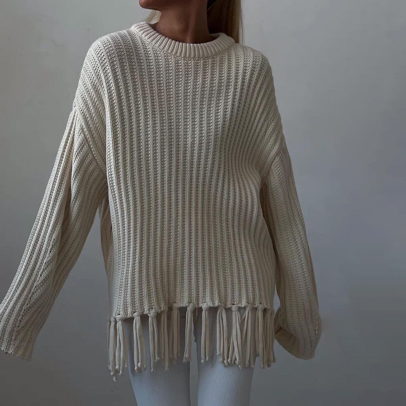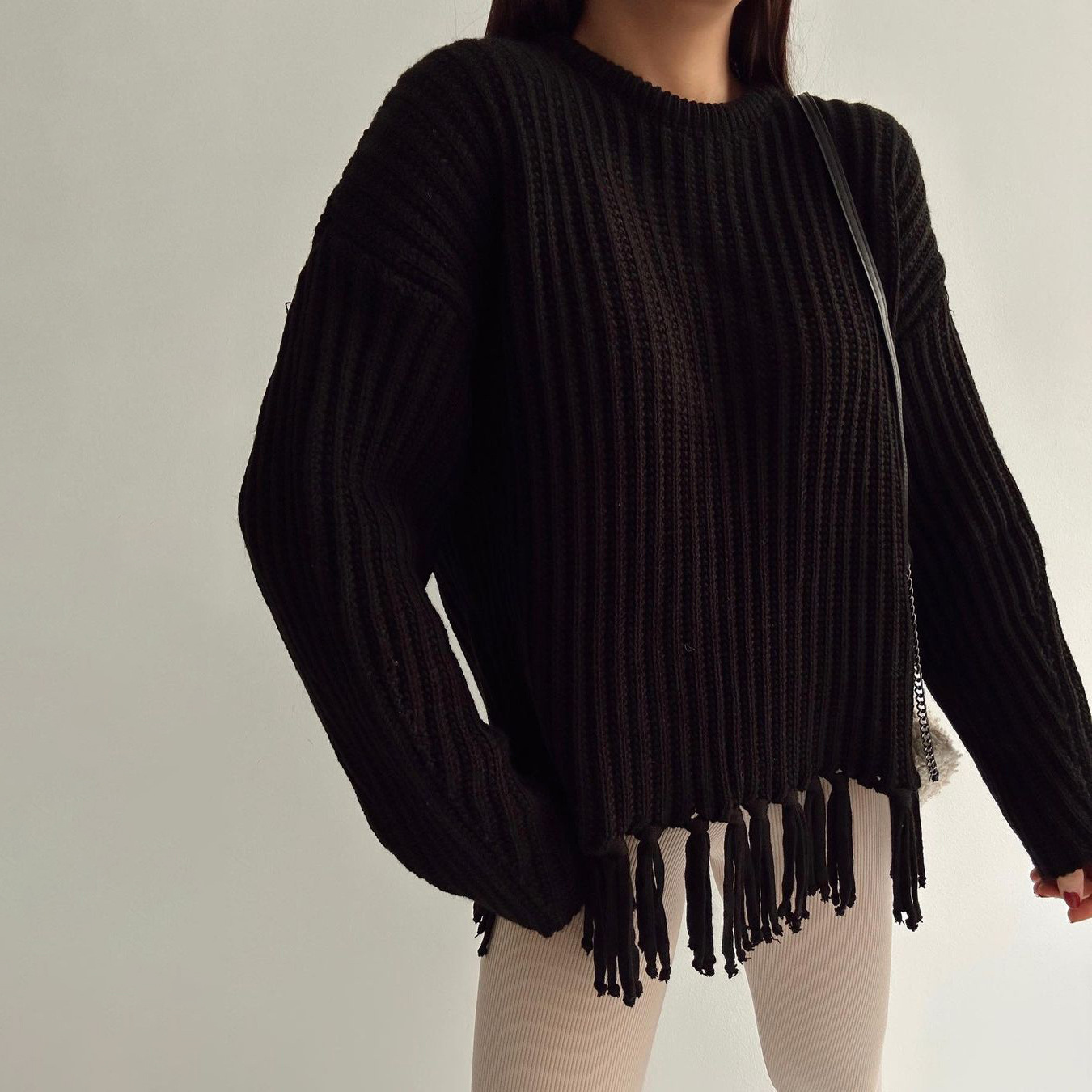 pull à pompons, manches longues.