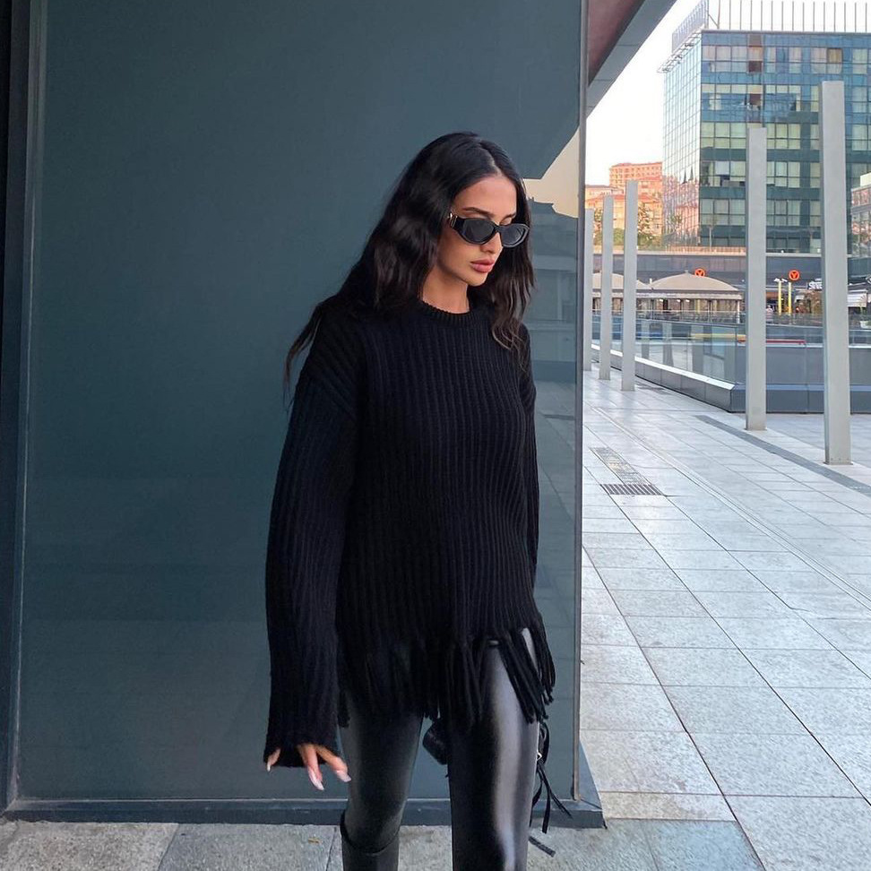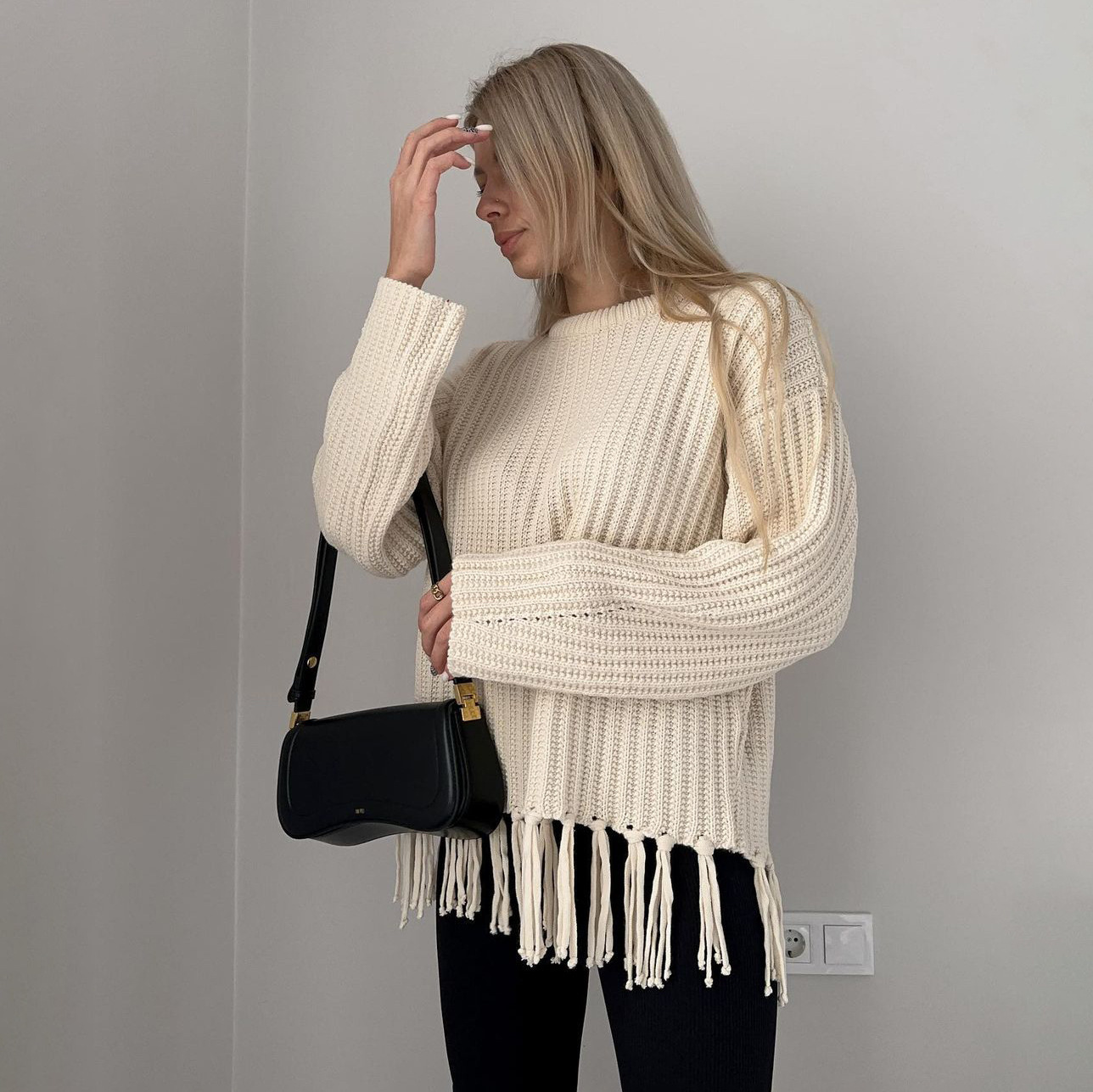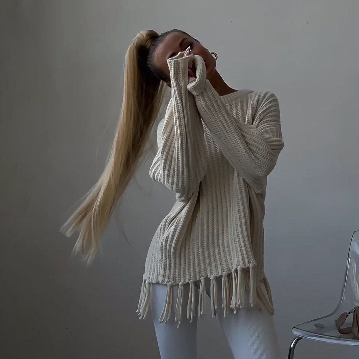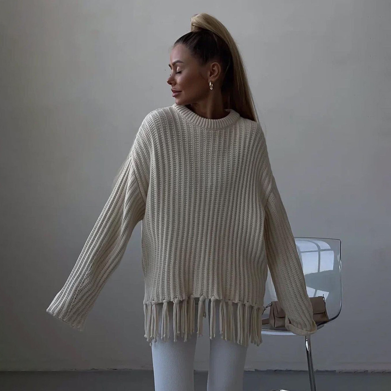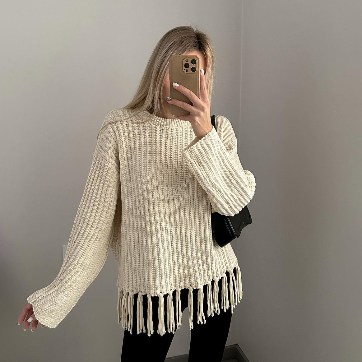 pull à pompons, manches longues.