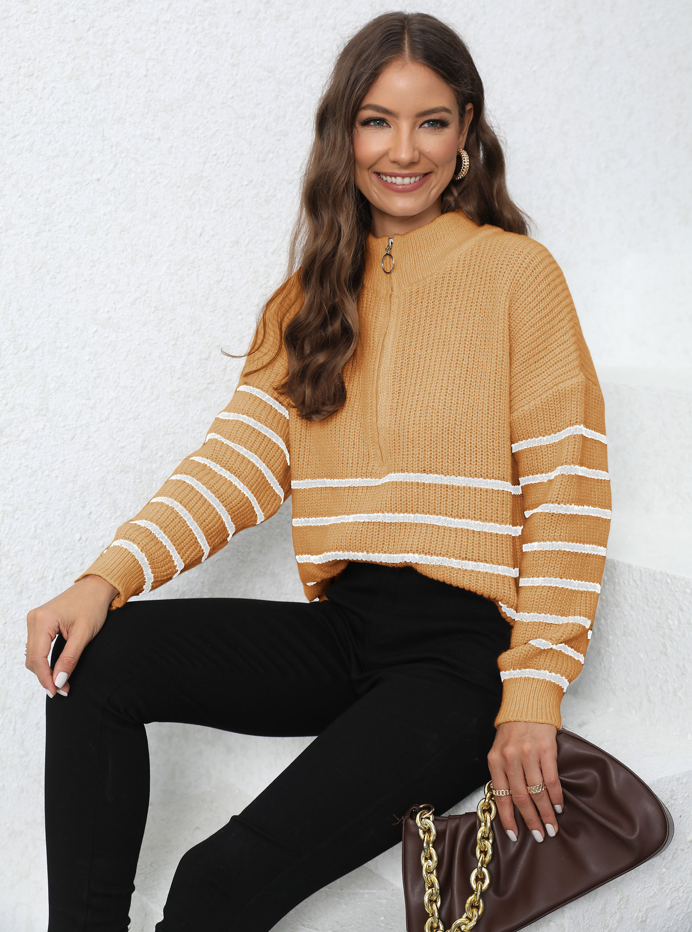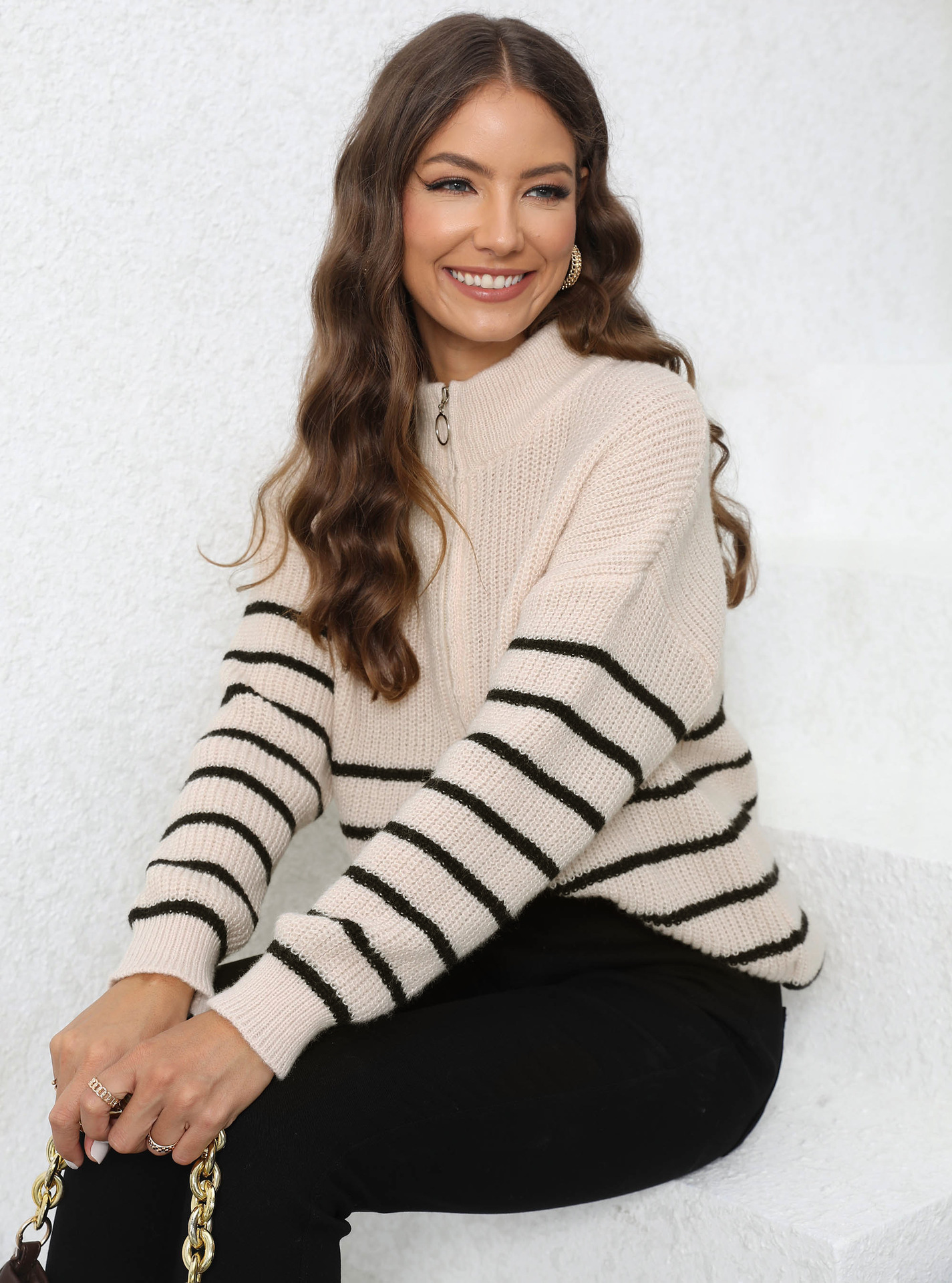 Pull ample à col montant zippé