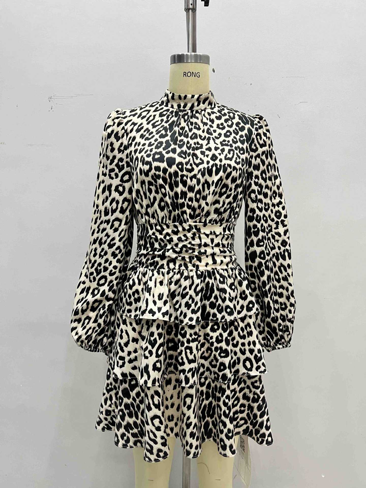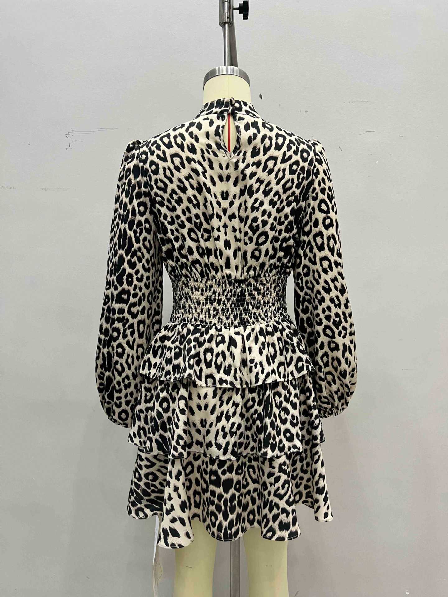 Robe à manches longues bouffantes imprimée léopard