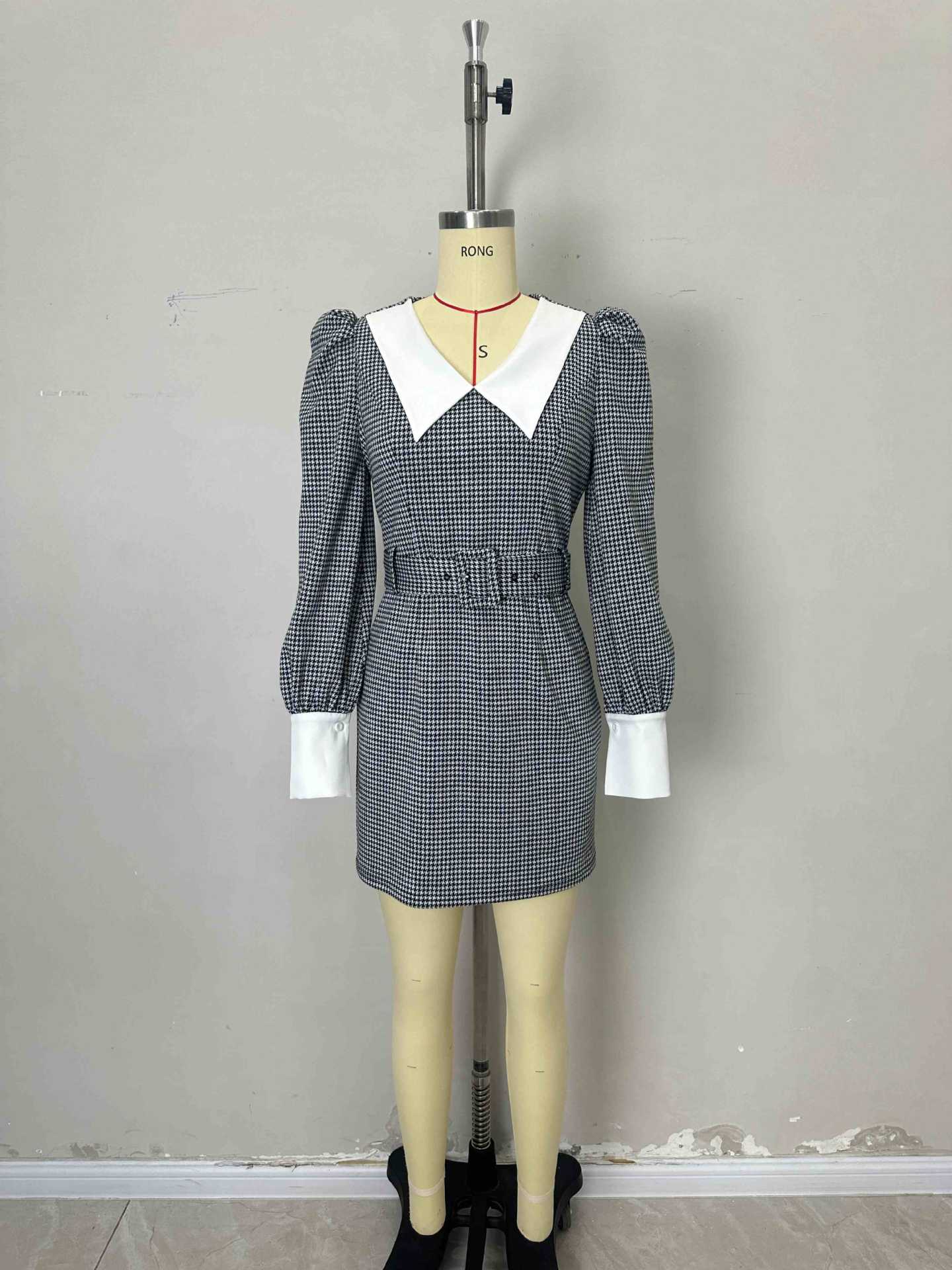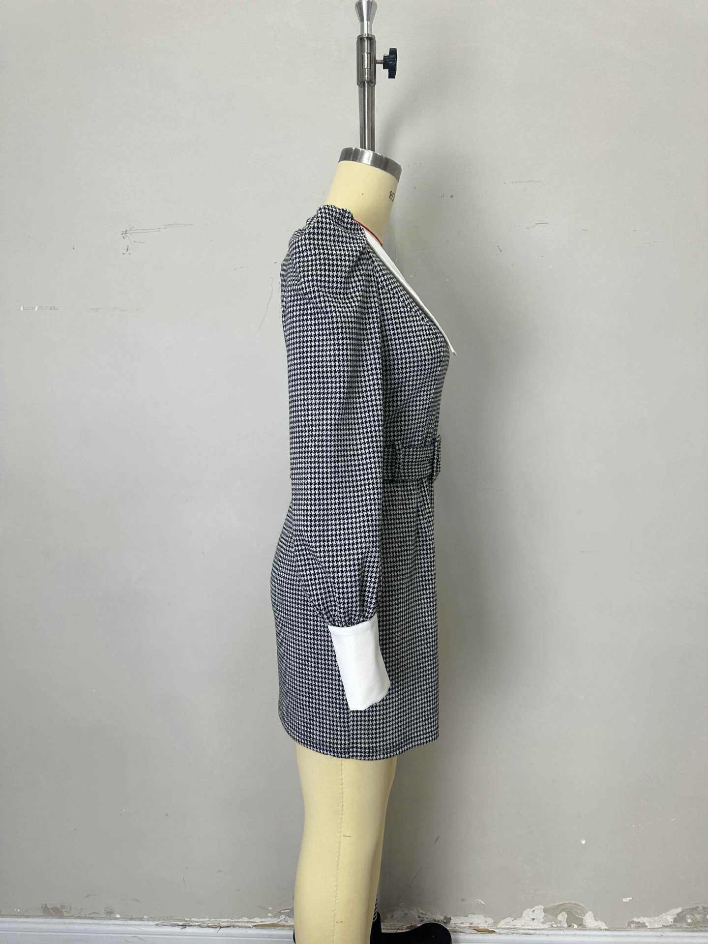 Robe amincissante à col en V et ceinture cintrée à la taille