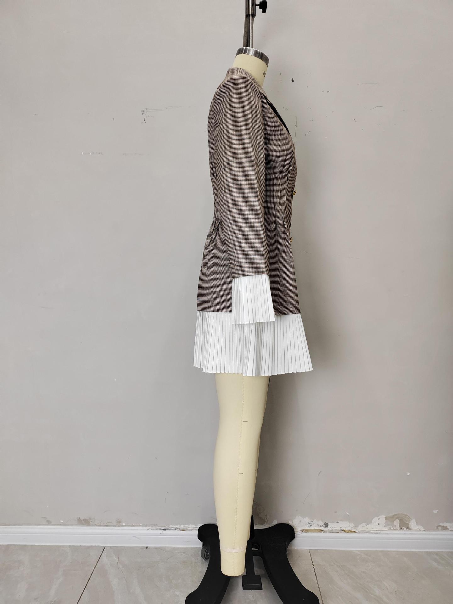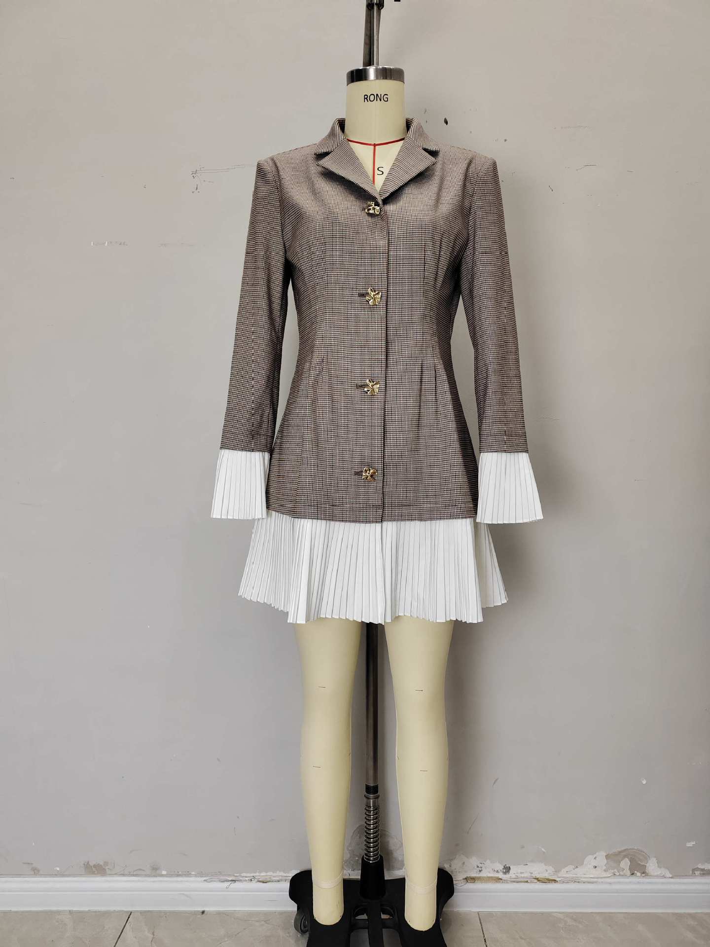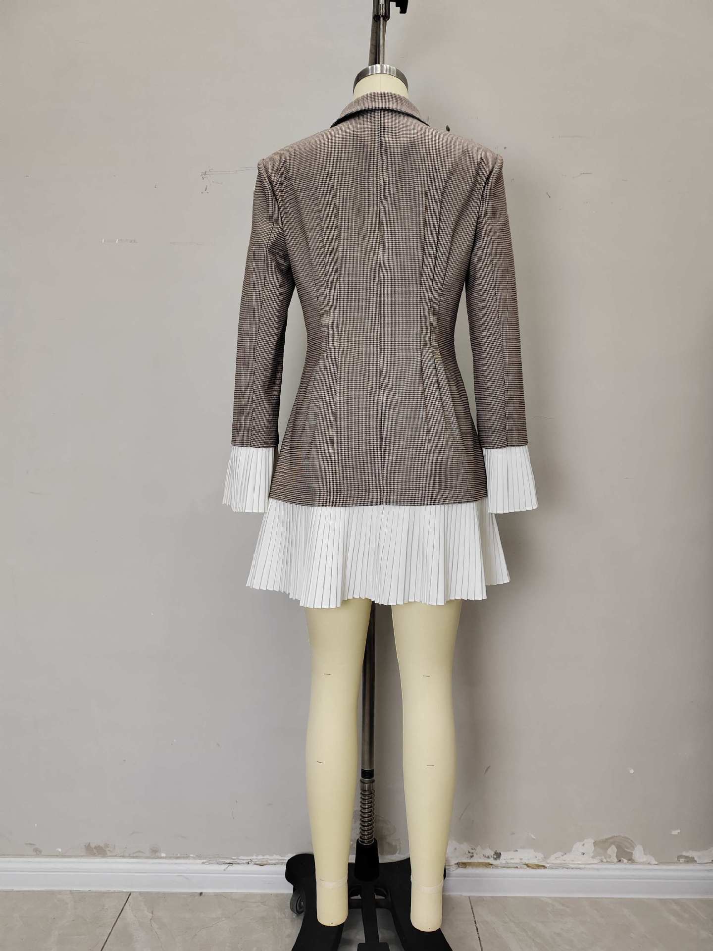 Robe tailleur plissée à carreaux cintrée à la taille