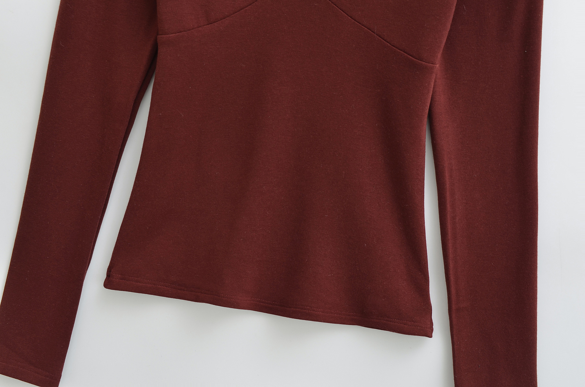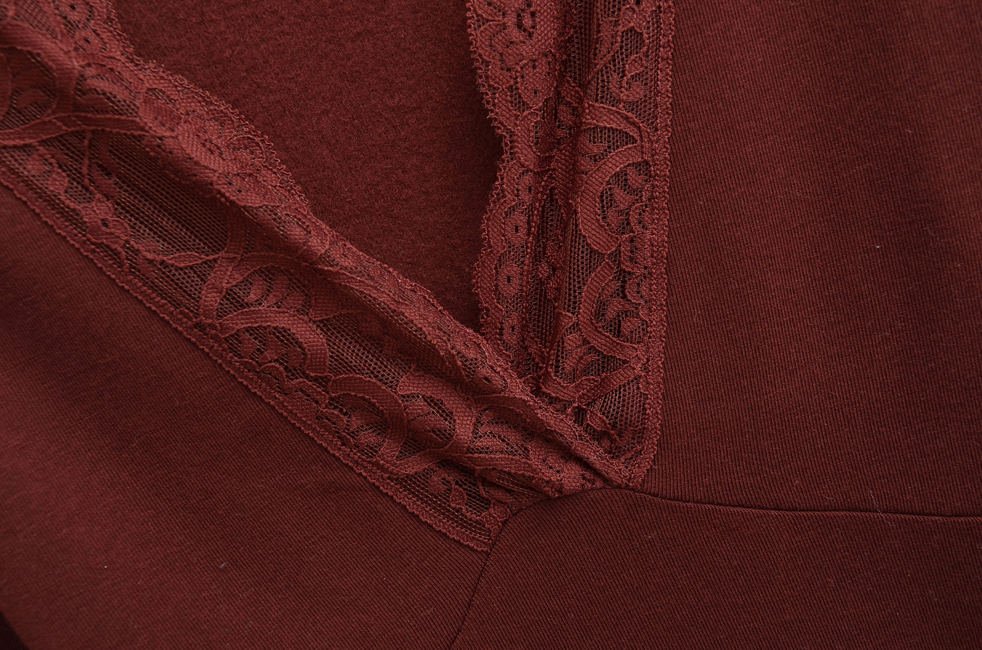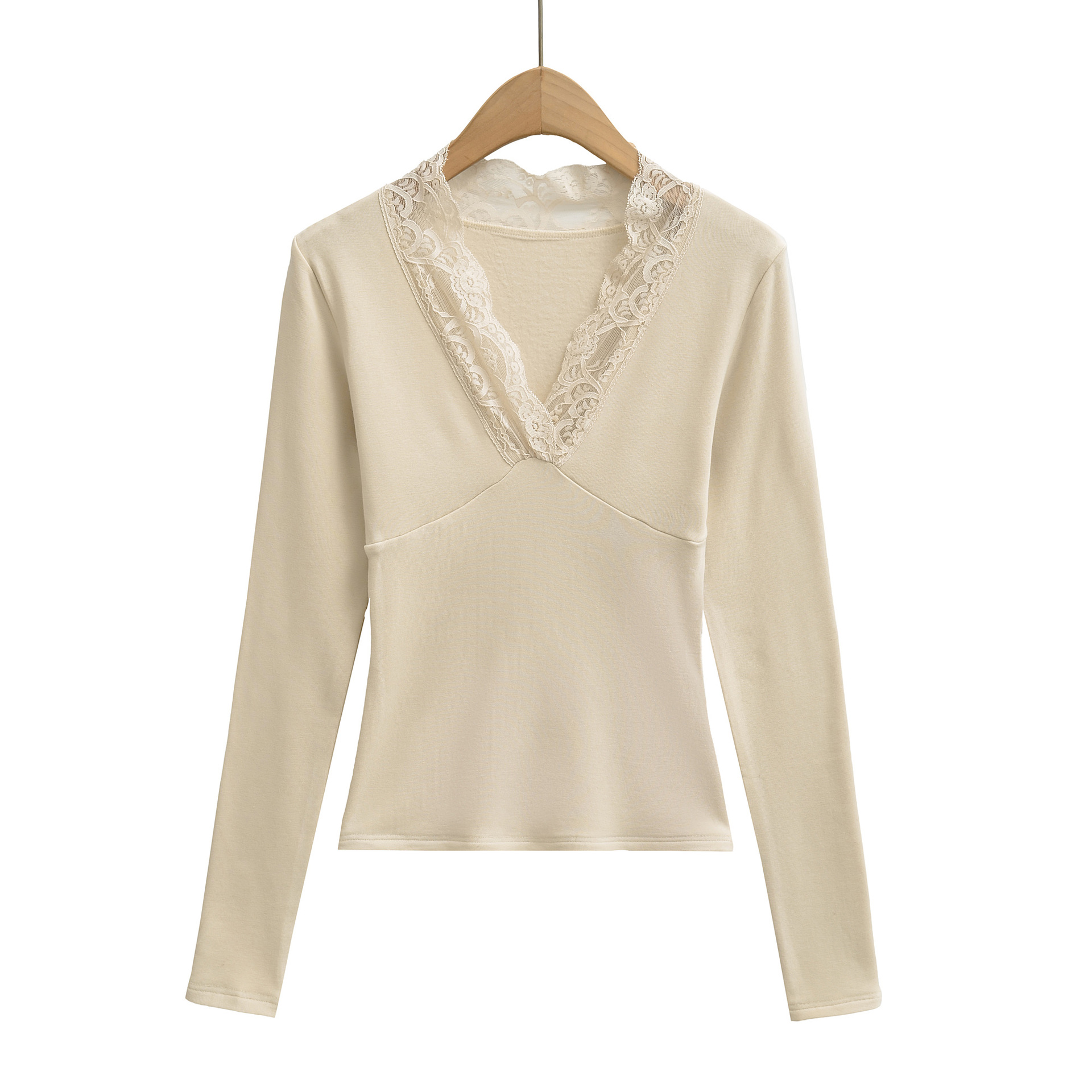 T-shirt à manches longues, col en V bordé de dentelle